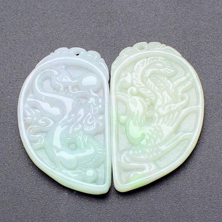 Natural jade A goods dragon and phoenix pendant couple pendant pair of jade pendant light purple light green floating flowers men and women money pendant
