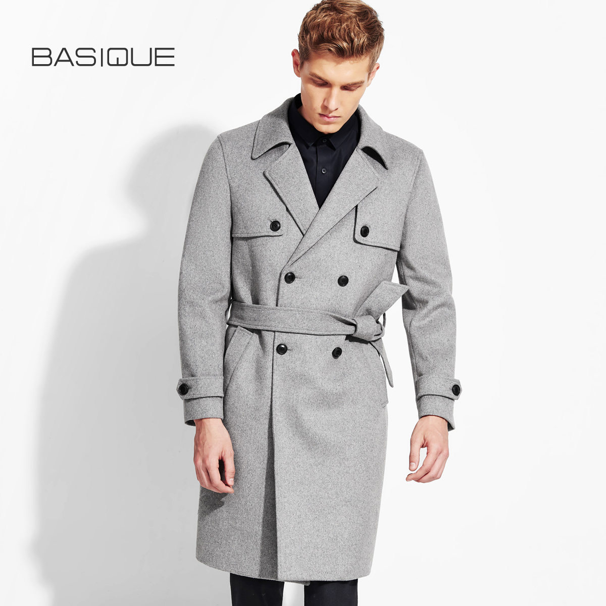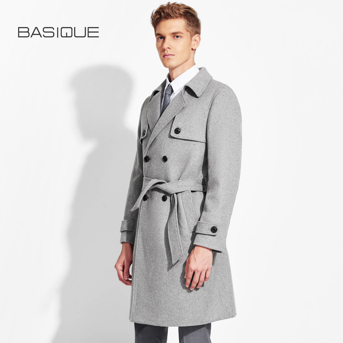 YuanBen 2021 winter wear new men's business casual woolen overcoat trench coat light grey