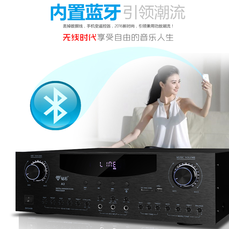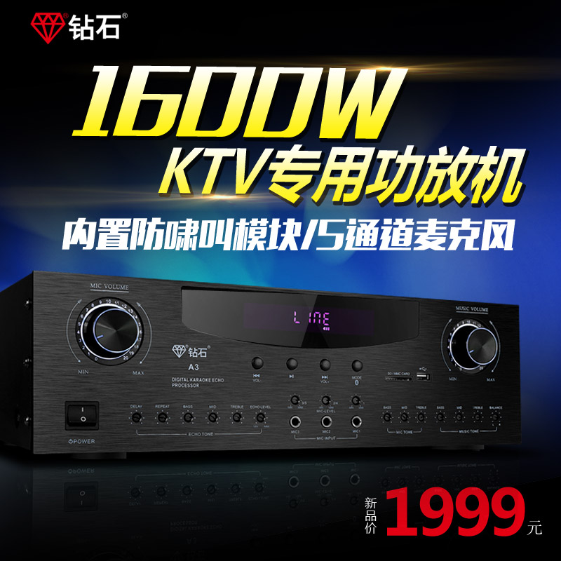 Diamond A3 High Power 15 Inch Professional Power Release Machine Home KTV Card Bag Box Karaoke Bluetooth Heavy bass power amplifier