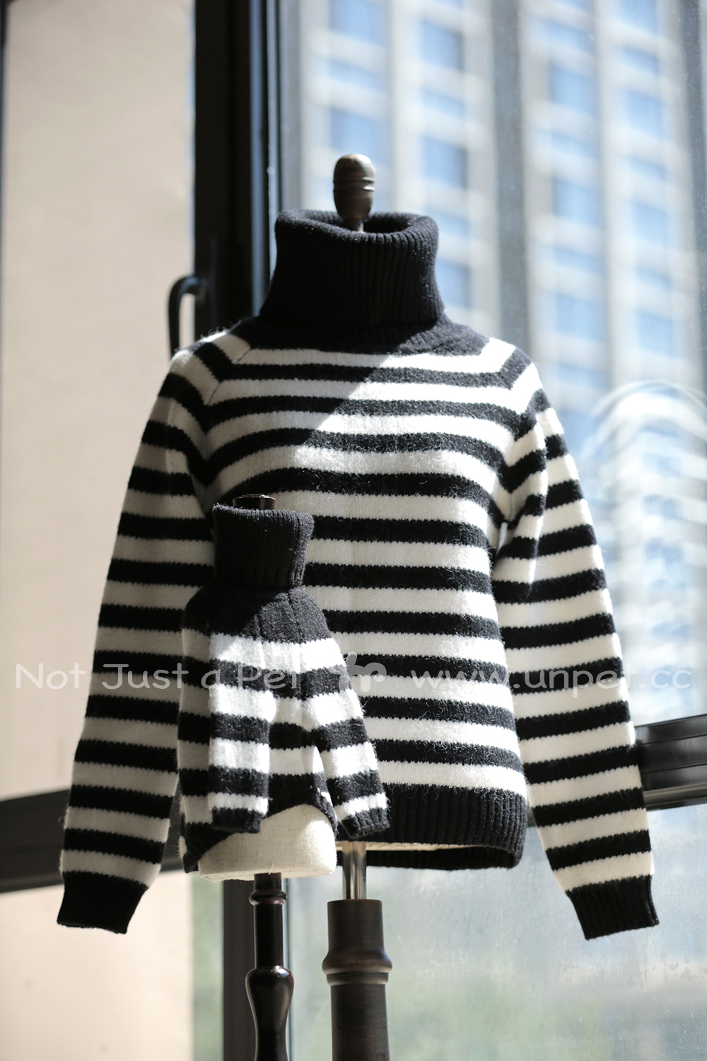 Black and White Striped Turtleneck Sweater (Dog Model)Black and White Striped Turtleneck Sweater (Mother Model One Size)Blue Orange Striped Turtleneck Sweater (Dog Model)
