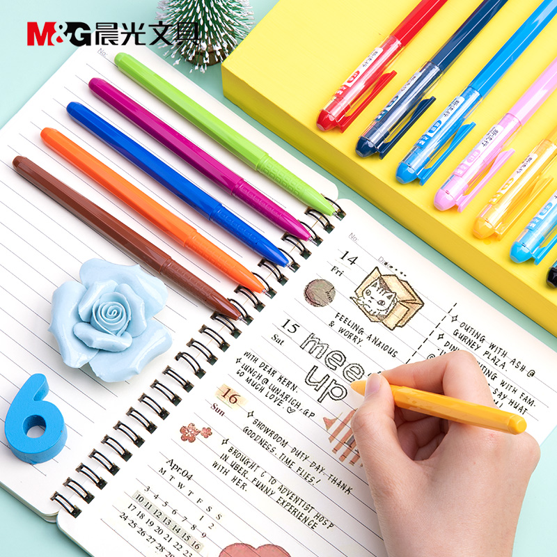 Morning light color gel pen Student full needle tube multi-color water-based pen 12-color 0 38mm hand account creative multi-color office stationery signed red blue black water-based pen Candy color small fresh set