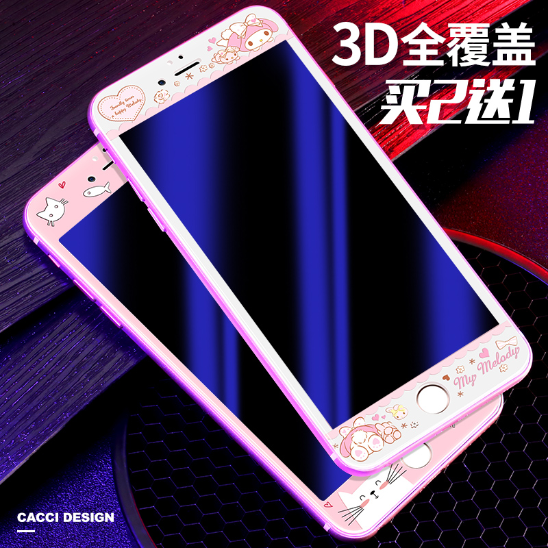 Kaqi iphone7 tempered film se2 full screen eight apple 8plus cartoon 9 color film i8 anti-blue light explosion-proof film 5 5 film 7p cute full coverage seven all-inclusive edge anti-fingerprint protection
