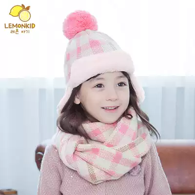 Korean version of children's autumn and winter hats Boys and girls wool plus velvet tide baby hat scarf two-piece three-piece set