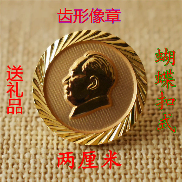 Mao's main portrait badge Fine badge Grandpa Mao commemorative medallion gold tooth-shaped badge Red collection gift ornament