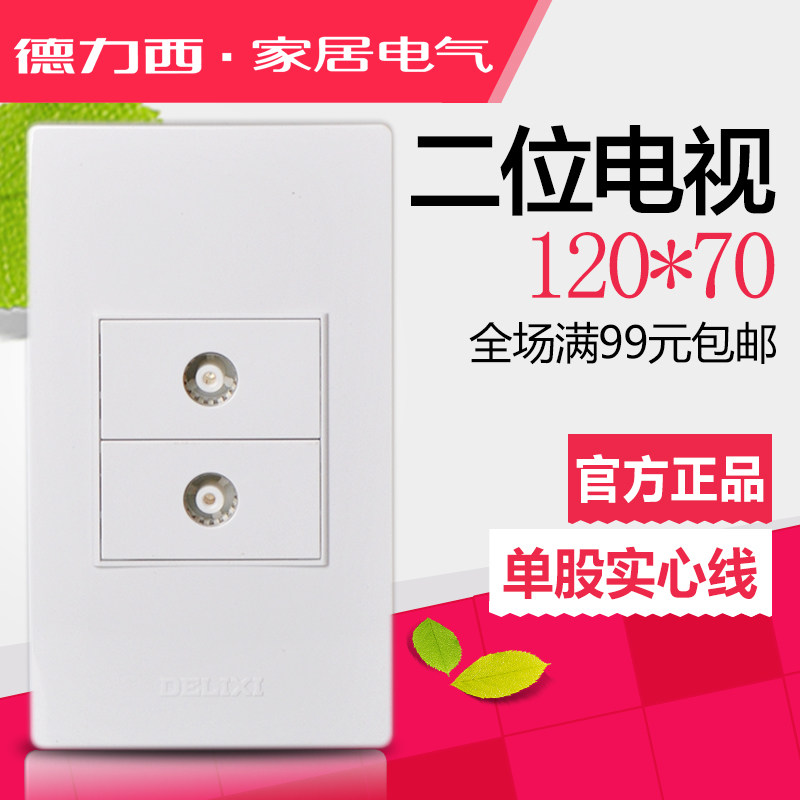 Delixi 120-type switch socket wall panel CD301 double TV two wired closed-circuit home
