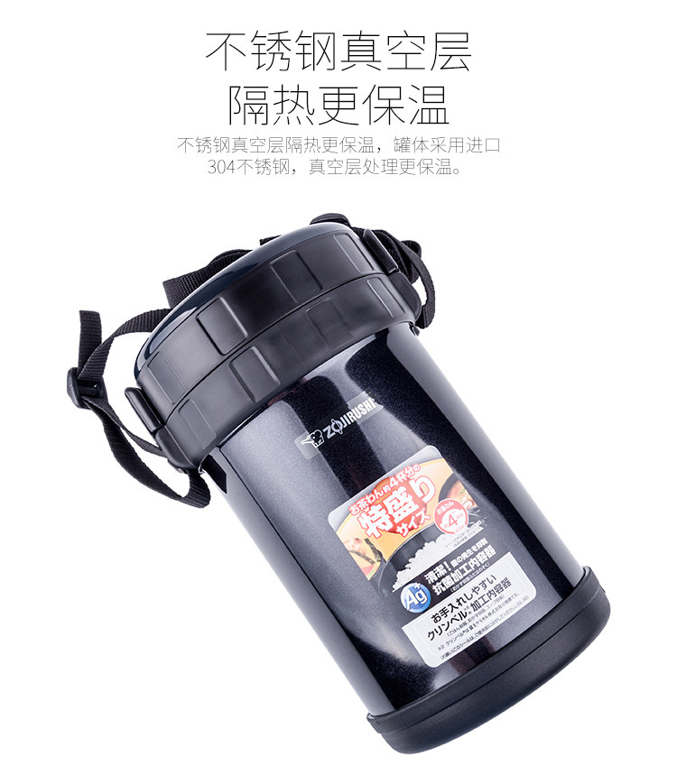 Japan counter Zojirushi 2L stainless steel vacuum insulated bento box Insulation bucket Bento box carrying pot SL-XE20 Black