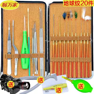 Ear picking tool set professional ear removal combination tweezers chicken feather stick goose feather stick goose feather stick wood ear scoop earwax cleaning