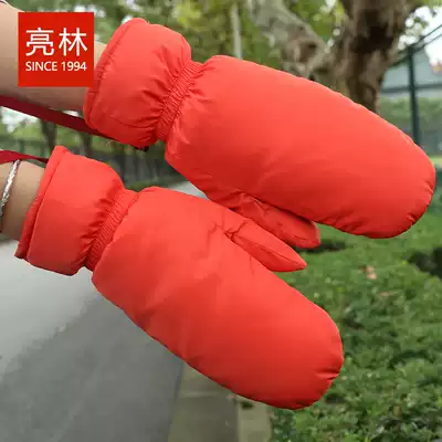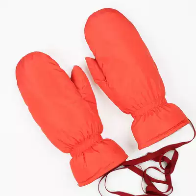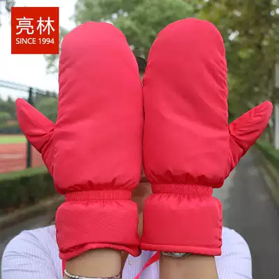 Hanging neck mittens women's winter warm plus velvet thickened couple Japanese and Korean cute ski down gloves