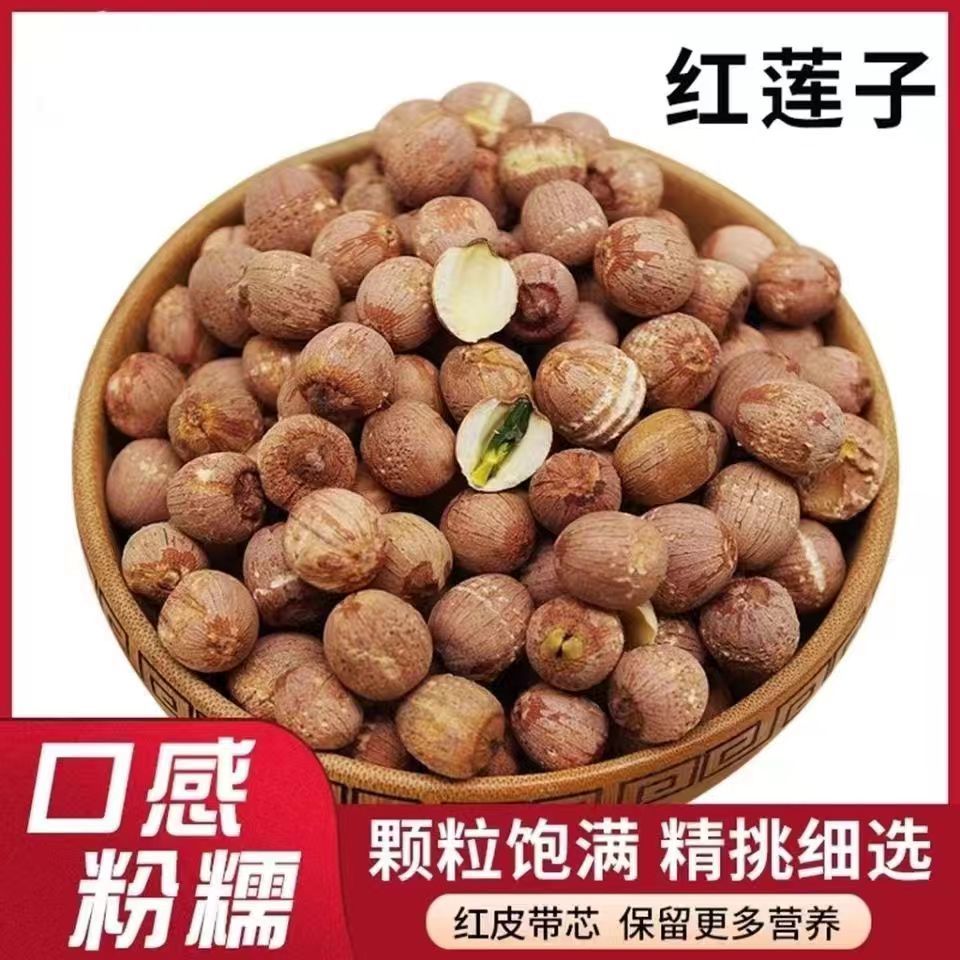 Red lotus seeds with heart and large grains Xiangtan lotus seeds with core dry goods farmhouse Hunan specialty powder glutinous red skin lotus seeds 500g