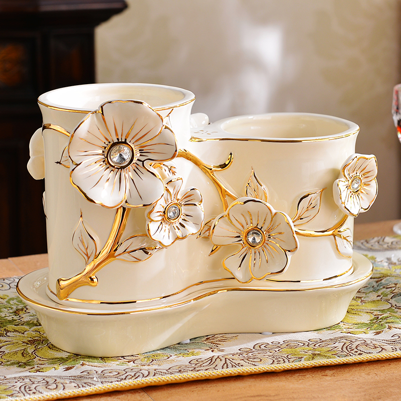Chopsticks cage ceramic draining creative European-style kitchen with chopsticks barrel spoon household double barrel storage box tableware rack