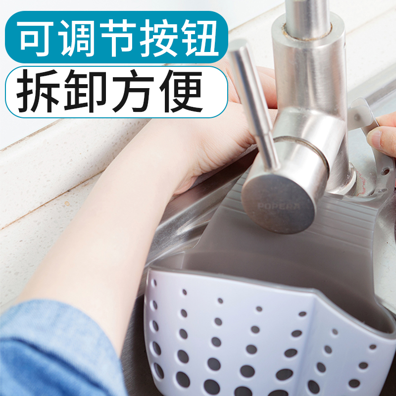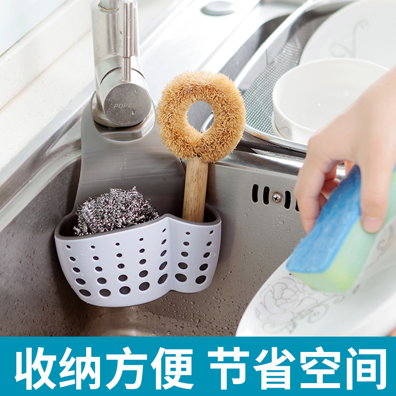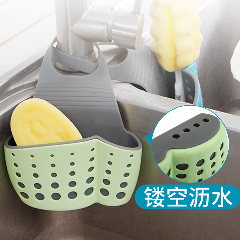 Kitchen faucet Drain basket shelf Kitchen supplies Hanging bag Small department store sink Sponge rag storage artifact