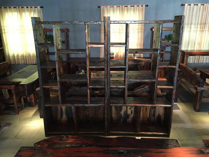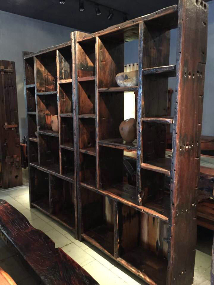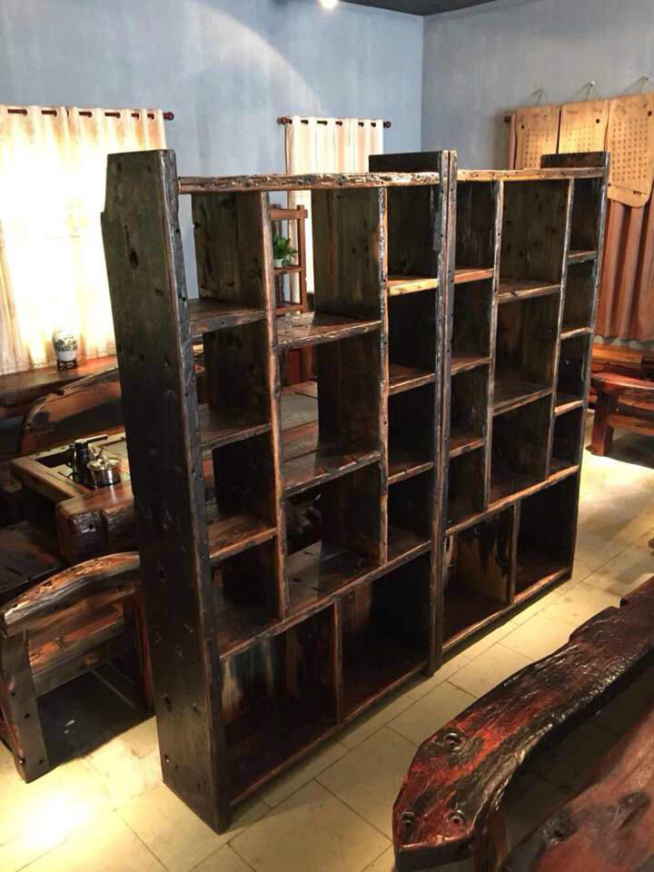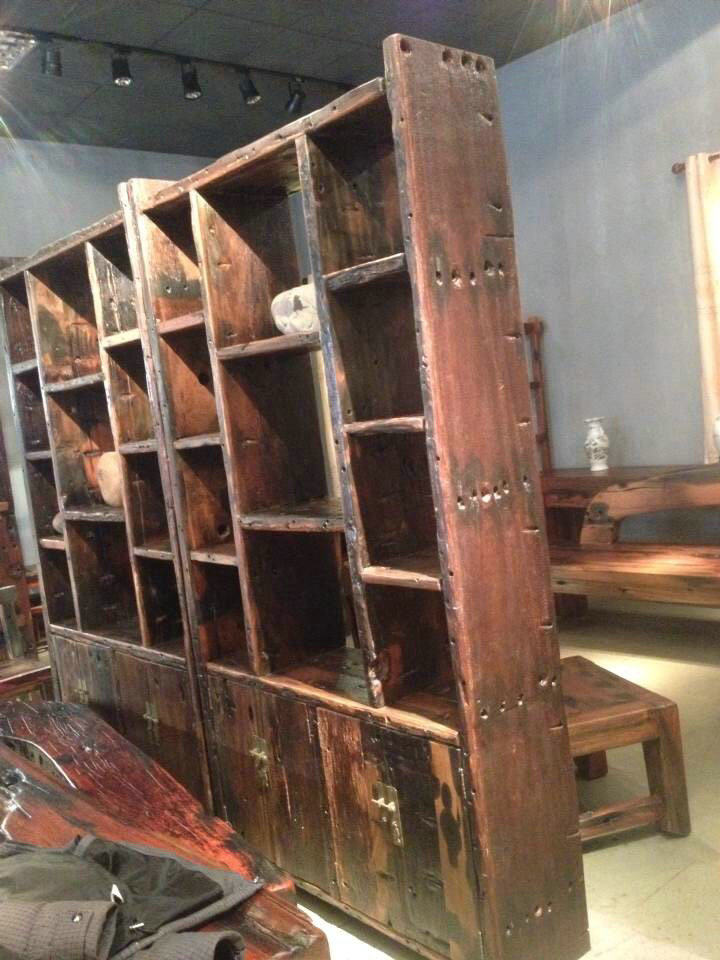 Old ship wood Bogu frame Solid wood Chinese tea display cabinet Ship wood shelf Duobaogu log entrance partition