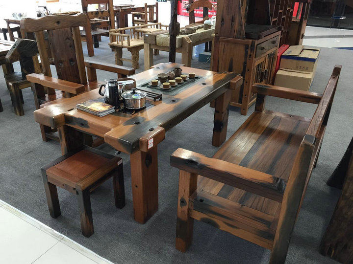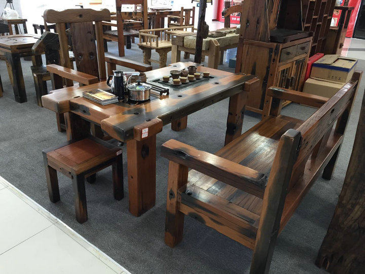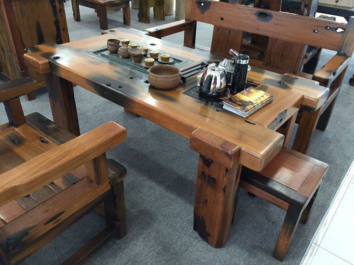 Old ship wooden tea table sunken ship wooden tea table solid wood kung fu tea table ancient ship wooden tea table and chair ship wooden furniture black gold stone