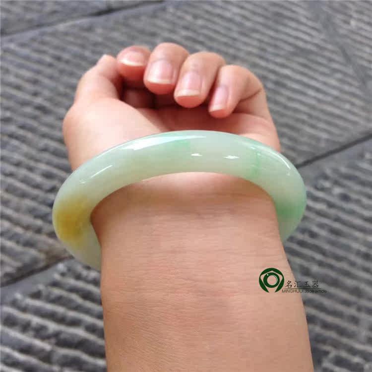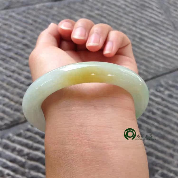 Myanmar natural old pit A goods jade jade round bracelet ice waxen kind yellow jade bracelet KC370