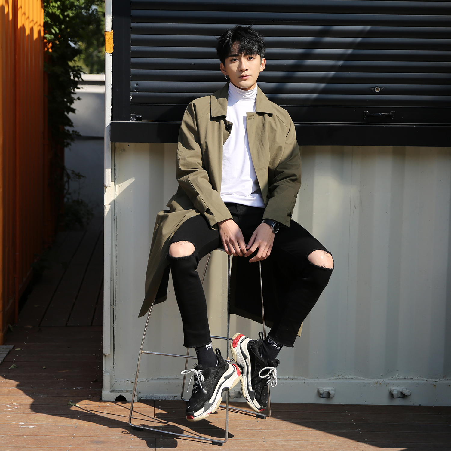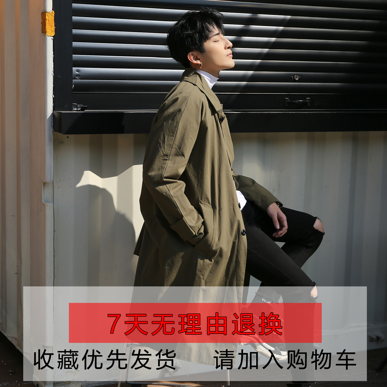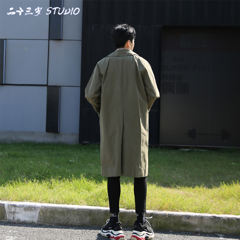Winewear men's mid-length day ensemble of the men's 2021 Superior senses Spring and autumn ruffled handsome casual coat-of-the-coat-Taobao