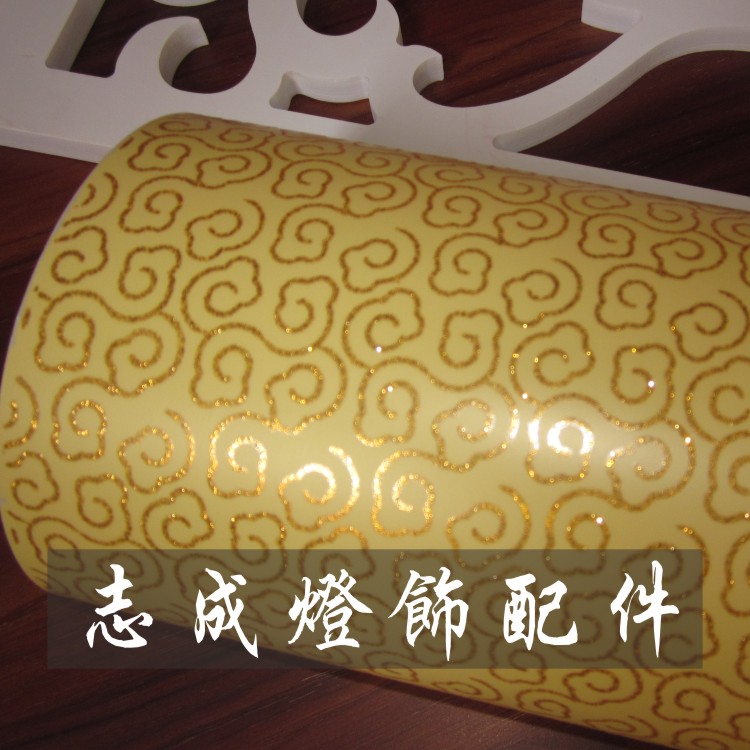 Parchment lampshade material PVC negative sheet pure handmade gold powder Xiangyun aisle hollow wood carving lattice light transmission