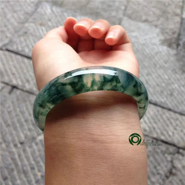 Myanmar natural old pit A cargo jade jade jade bracelet ice seed floating ink jade bracelet children with certificate KC391