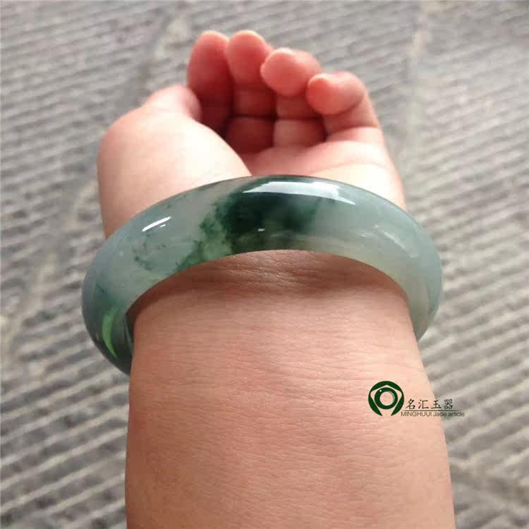 Myanmar natural old pit A cargo jade jade jade bracelet ice seed floating ink jade bracelet children with certificate KC419