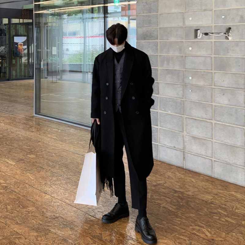 How about Mao's big coat men loose winter thickened in the middle of the long version of the wind coat Korean version of men cashmere coat Japanese coat day coat