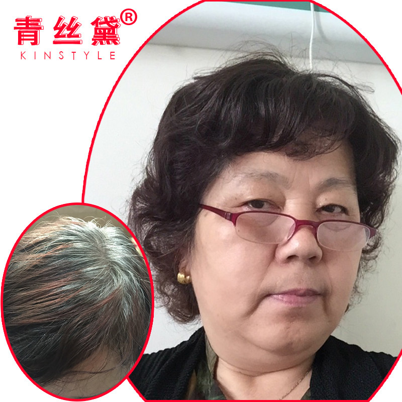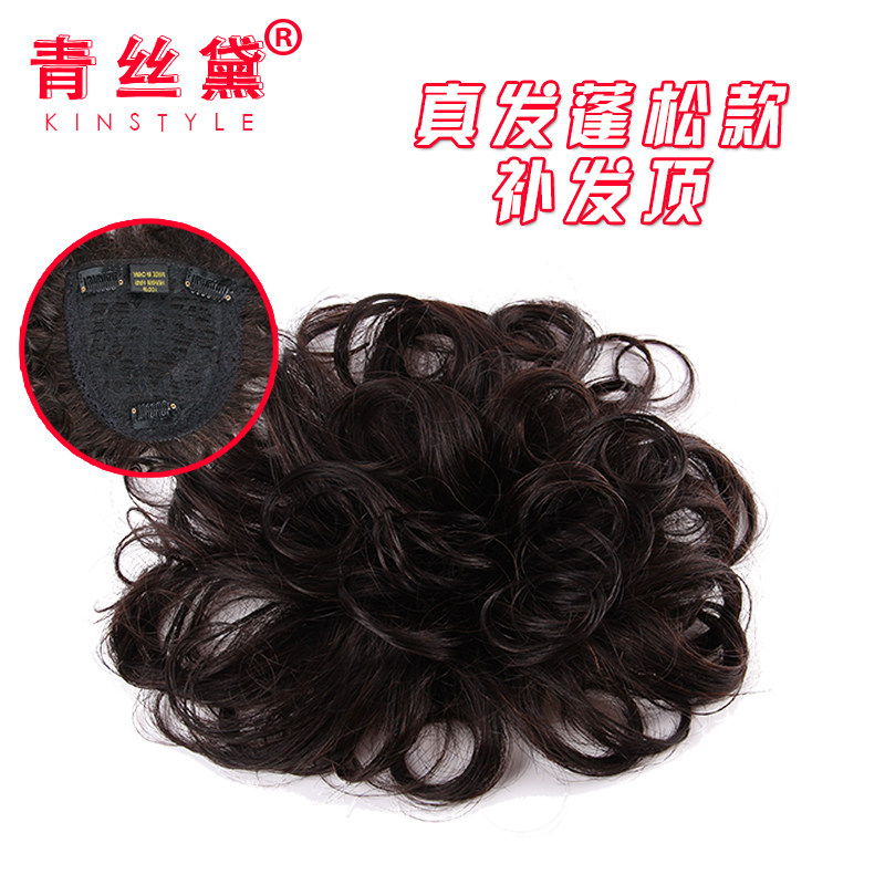 Green Silk Dei Wig Fluffy Head Without Mark for Real Hair Tonic Hair FLUFFY WOMAN THIN SHORT CURLY HAIR INVISIBLE TONIC BLOCK