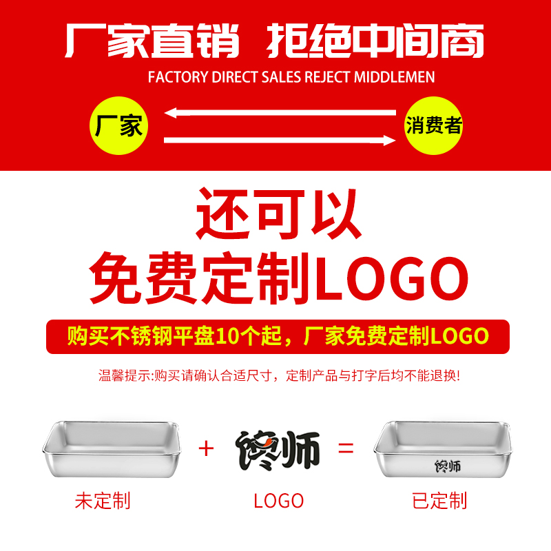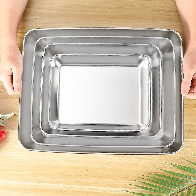 Stainless Steel Flat Pan Rectangular Halogen Meat Dish Cooked Dish tray Hide Tray Towel Pan Flat Chassis Grilled Fish Pan