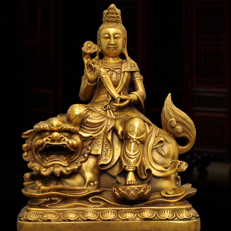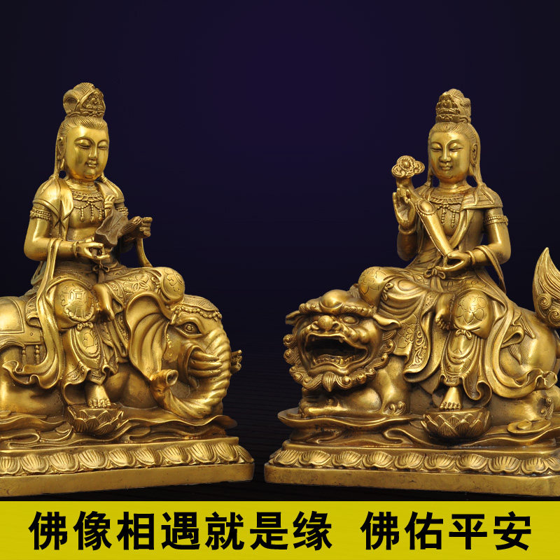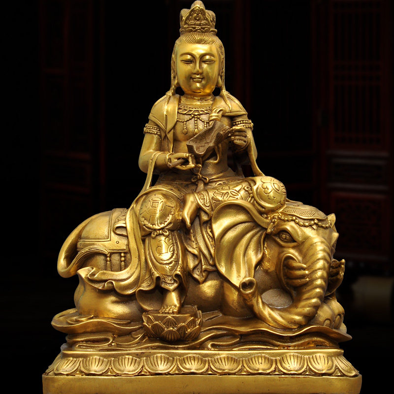 Brass Wenshu BodhisattBodhisattva Puxian bodhisattva at the mercy of the Three Holy Family Buddhist temples dedicated to Buddhist statues craftsmanship gift hem