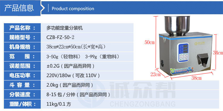 Granular powder quantitative metering subpackaging machine filling machine grains and miscellaneous grains tea medicinal food subpackaging machine F4