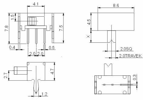 SK12D07 Two-speed slide switch Side slide SK12D07VG4 side slide switch Side slide
