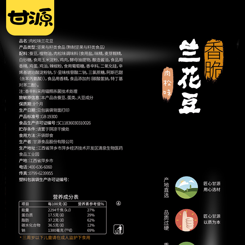 Ganyuan Brands Meat Pine Taste Silkworm Bean 855g Snack Casual Snacks Fried Goods Small Packaged Nuts Eating lower Wine Vegetables