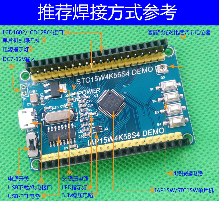 STC15 MCU Minimum System Board IAP15W4K58S4 Core Board STC15W4K56S4 Simulation