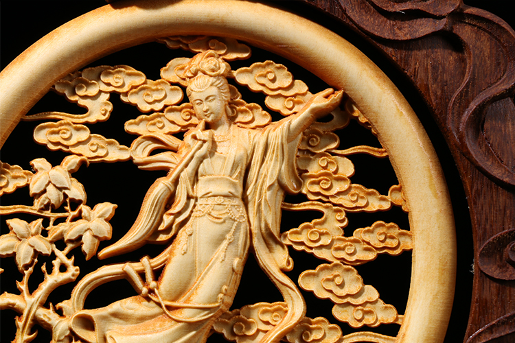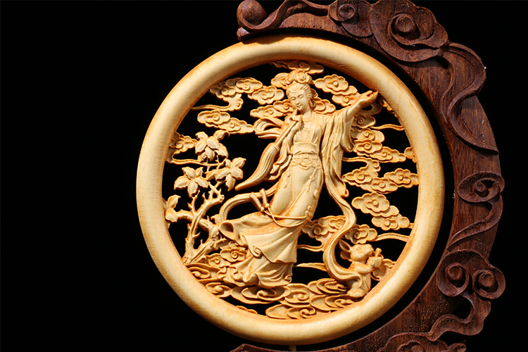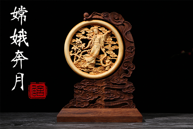 Fidelity Yellow Poplar Wood Carving New Chinese Style Home Decoration Pendulum Piece Engraving Crafts Gifts Swing Accessories Business Middle Autumn Gift Chang'e Moon