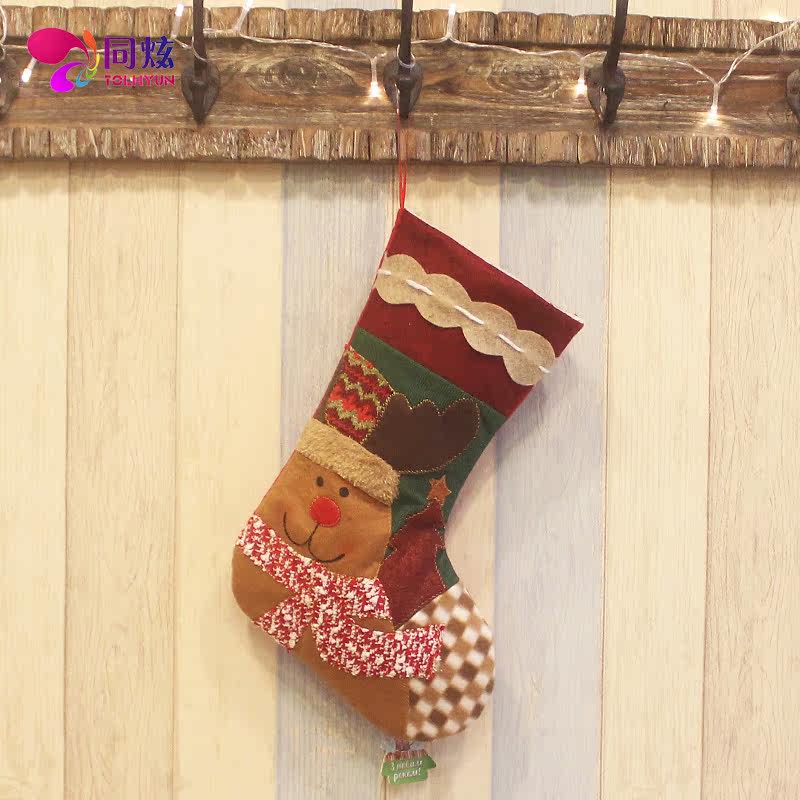 Tongxuan Christmas decoration socks Christmas tree pendant gift bag candy bag gift bag printed Christmas socks