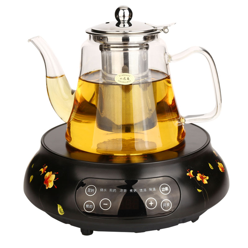 Black crystal furnace special glass teapot heat resistant thickened burning kettle heating flower teapot stainless steel filter cooking teapot