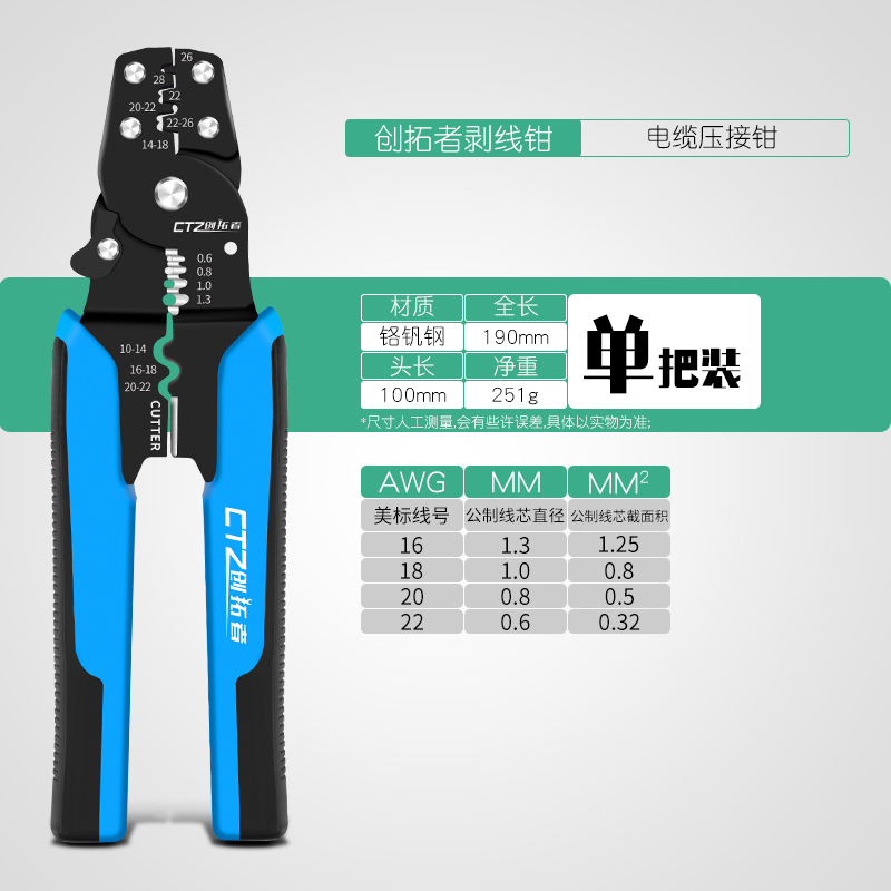 Chuangtuo 6-inch single-color wire stripper Chuangtuo 7-inch two-color wire stripper Chuangtuo 3-in-1 wire stripper Chuangtuo 8-inch double switch port wire stripper Chuangtuo Chuangtuo cable crimping pliers 4-in-1