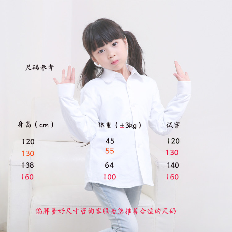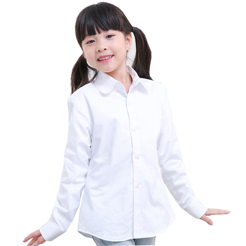 Girl Long Sleeve White Shirt Pure Cotton Plus Suede Thickened Girl Round Neckline White Inch School Uniforms CUHK Child White Shirt