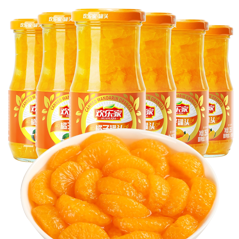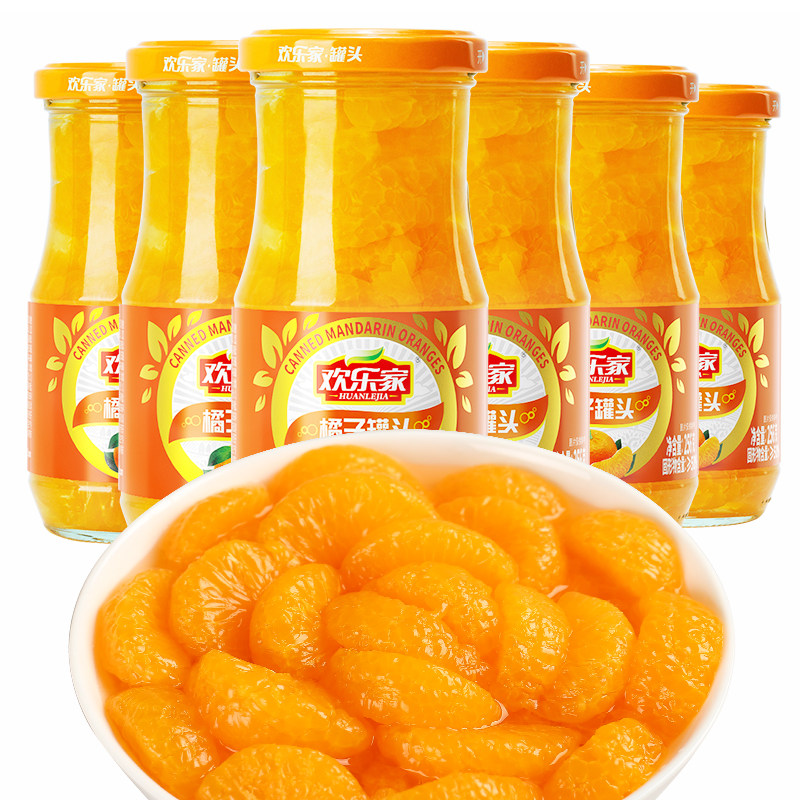 Happy home orange canned 256gX6 cans of fresh orange sugar water canned fruit whole box glass bottle Orange