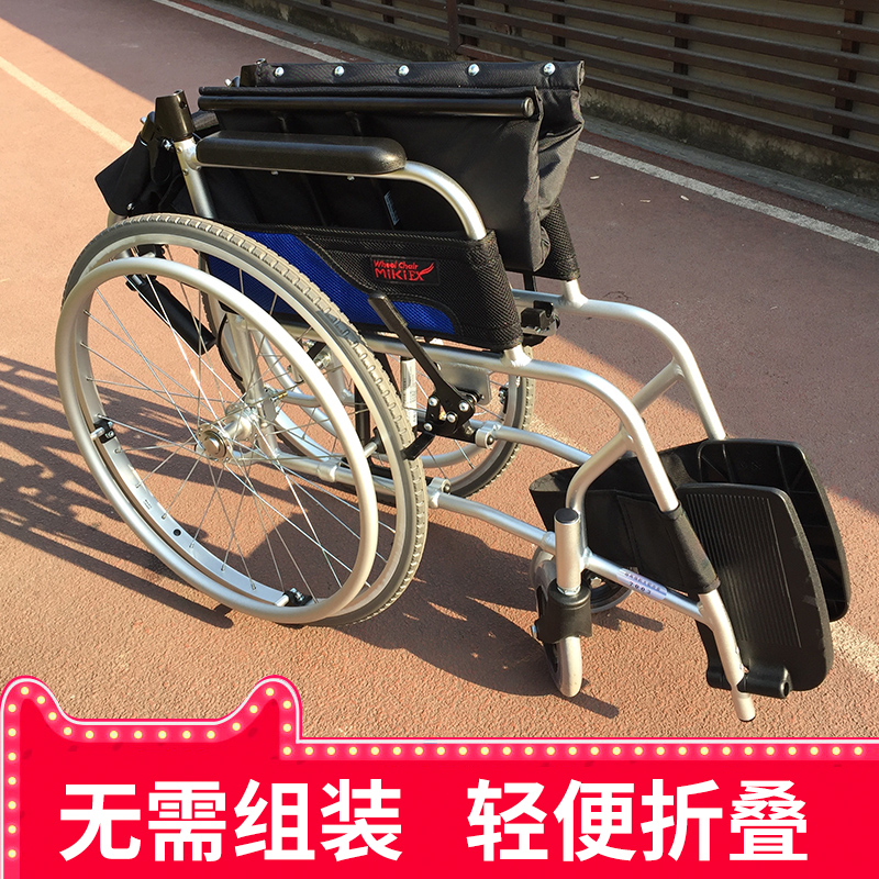 Japan MIKI wheelchair LS-2 inflatable-free tire Ultra-portable light folding car-mounted elderly hand-pushed wheelchair