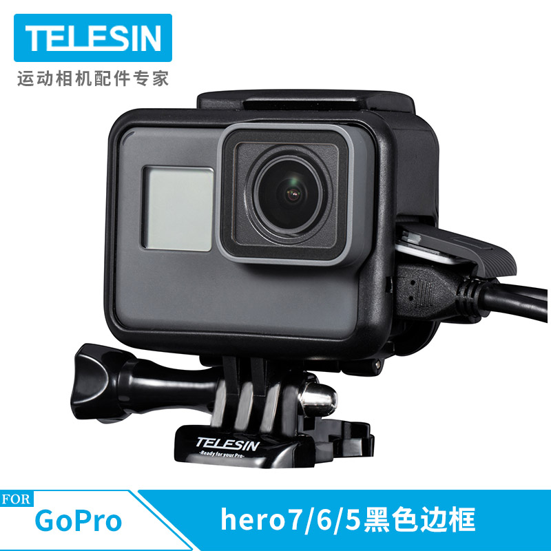TELENSIN adapts GoPro hero9 8 7 6 5 portable charging frame camera horizontal shooting vertical shooting Anti-drop cooling protective shell Rabbit cage edge plastic frame accessories