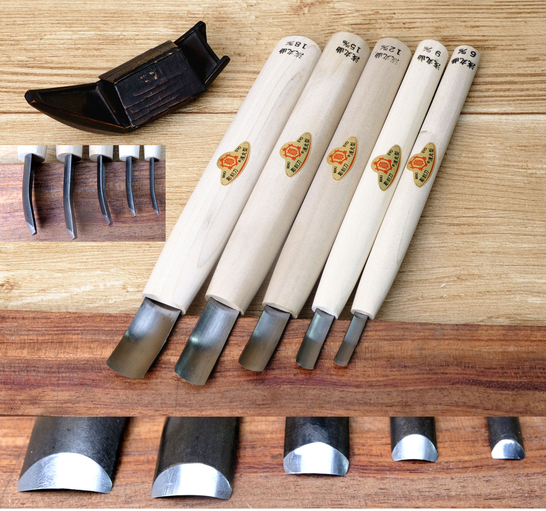 Miki Akira Maru Koji woodworking carving knife depth and shallow pill hand digging spoon plate round mouth warped head green paper steel Japan original