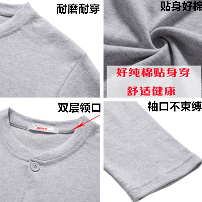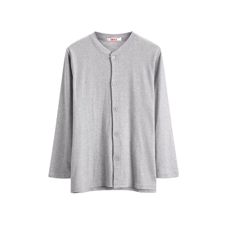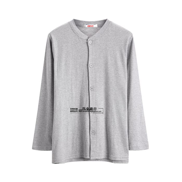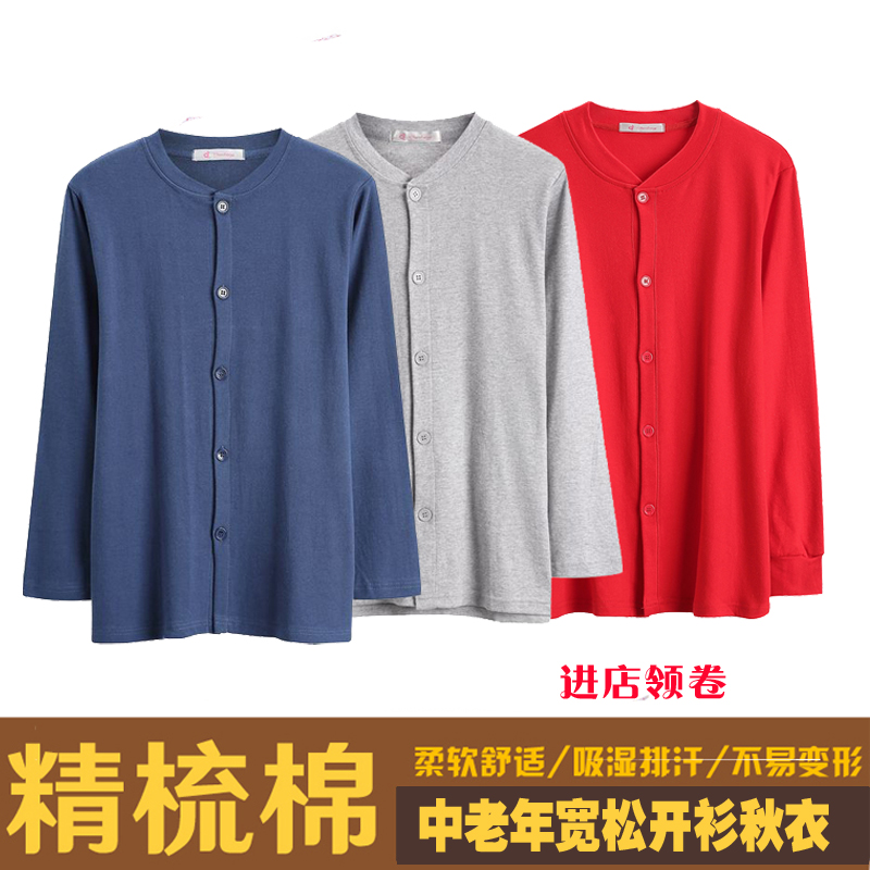 Autumn men's middle-aged underwear Pure cotton long-sleeved top cardigan Autumn coat single-layer cotton cardigan placket increase