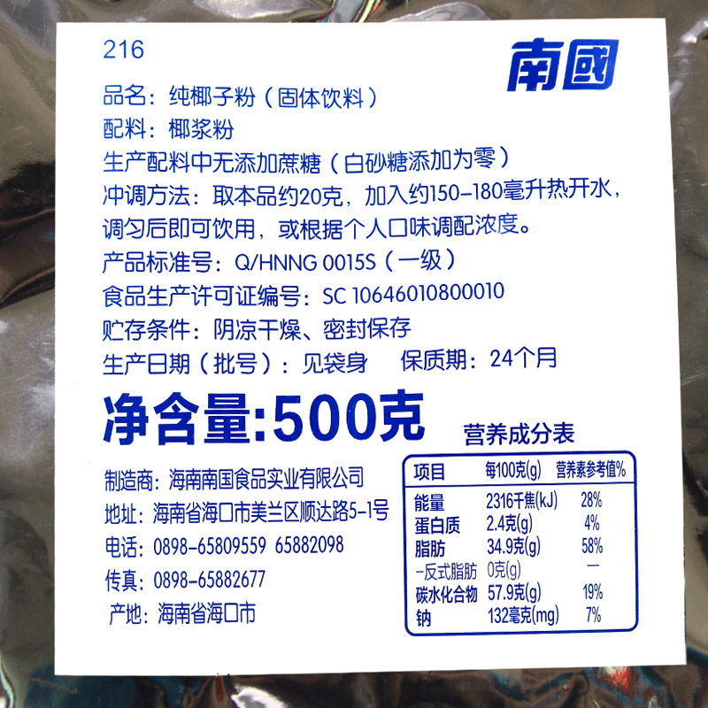 Hainan special South China pure coconut powder 500 gr instant type water bar commercial