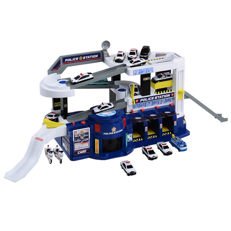 Japan Domica tomica toy track scene sound effect police car launch police station base building parking lot