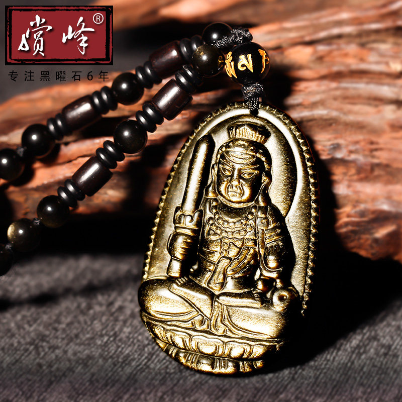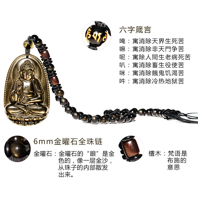 Obsidian Honmei Buddha Pendant Obsidian Male Necklace Female Amitabha Buddha Great Trend to Puxian Manjushri Bodhisattva Dog