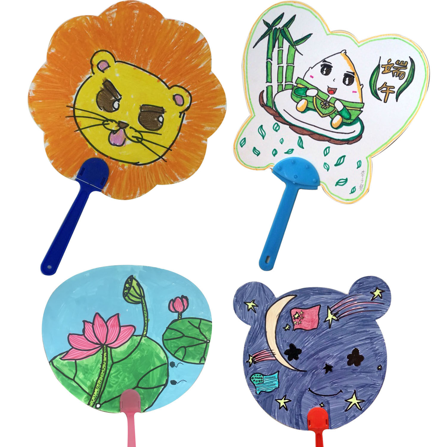 Blank fan hand-painted cartoon small fan children's painting folding fan DIY kindergarten painting art paper fan coloring group fan