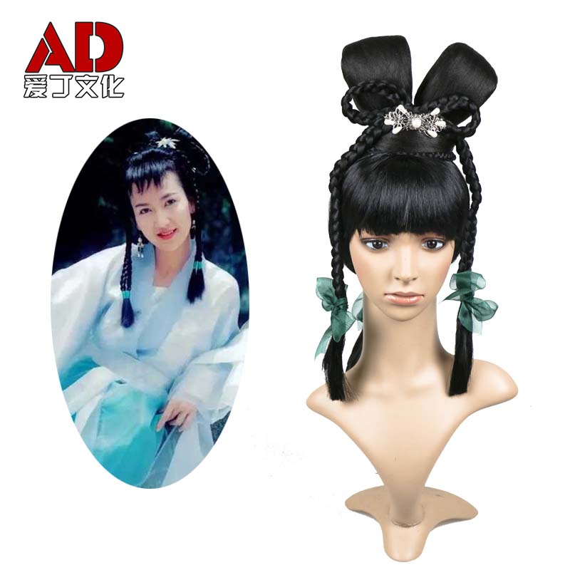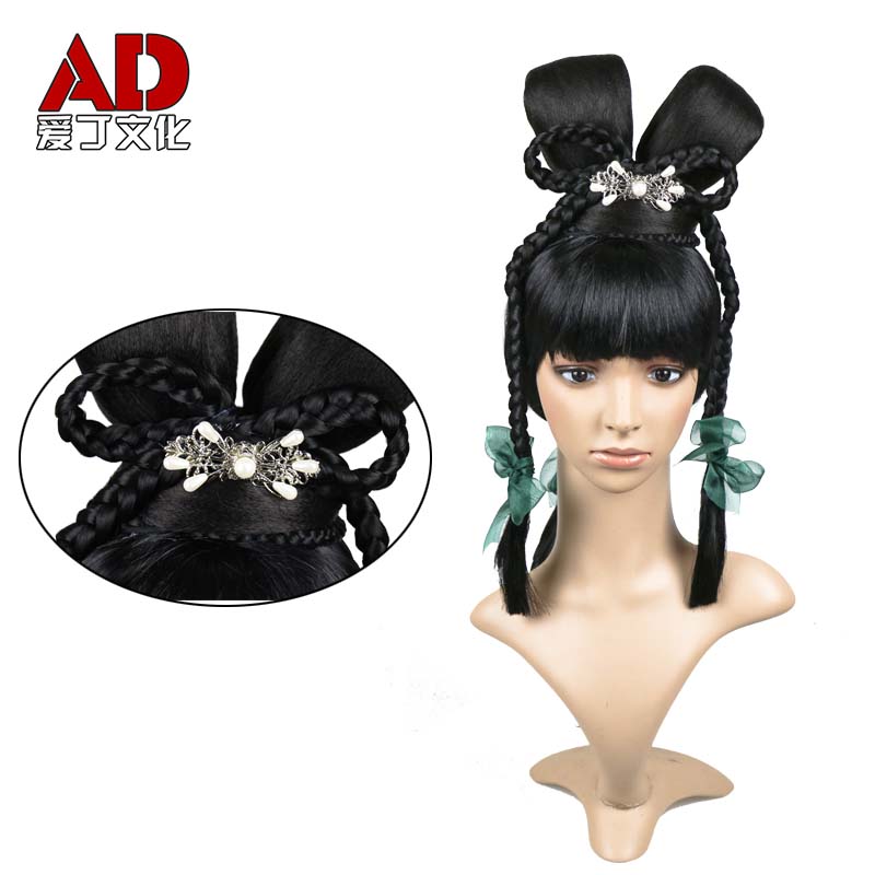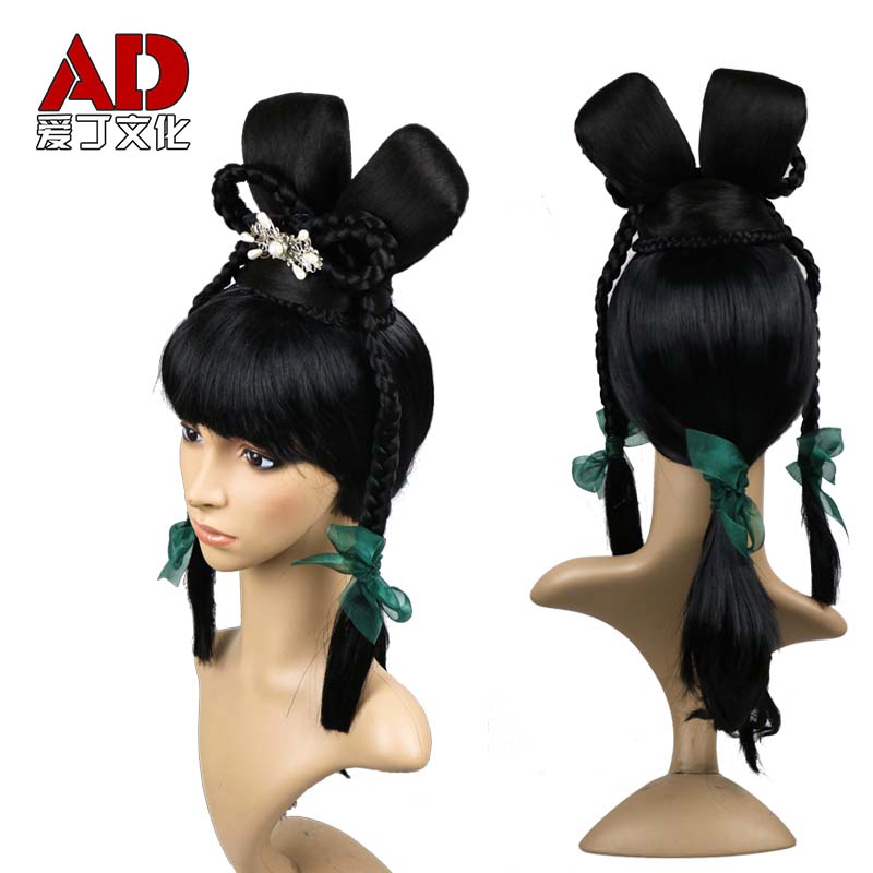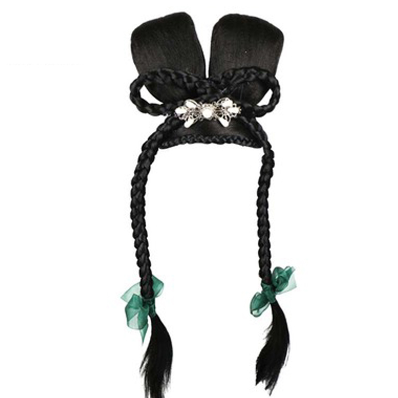 Small green headgear New White Lady Legend Little Qing Wig Headgear Joyless Comedy man Xiaoqing Anti-string styling Female Hair Bun