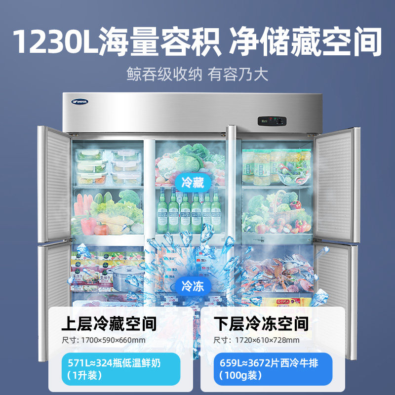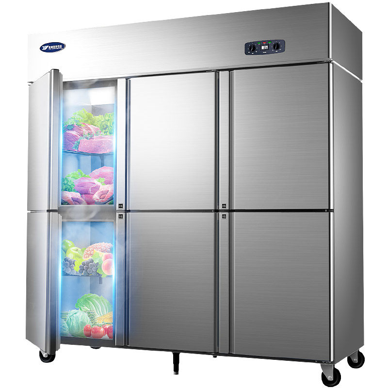 Silver All Six Door Open Door Commercial Fridge Kitchen Refrigerated Cabinet Twin Warm Frozen Display Cabinet Large Capacity Freezer Four Doors Freezer