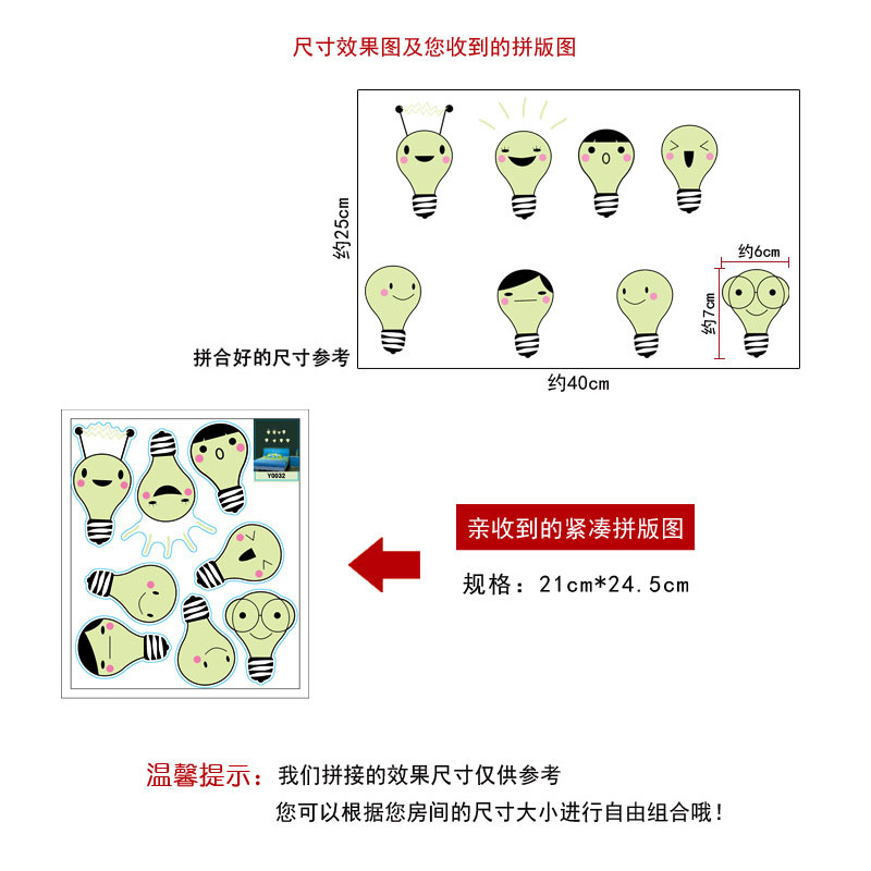 Cute small light bulbs environmental protection luminous wall stickers children's room corridor porch TV background wall decoration removable stickers