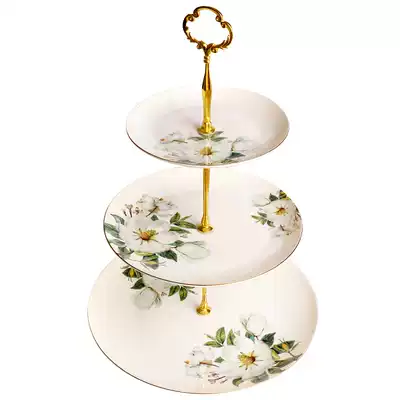 European-style snack plate Three-layer creative bone China snack rack Afternoon tea set Fruit dried fruit plate Ceramic cake plate