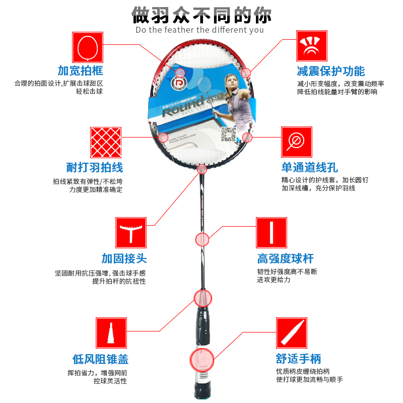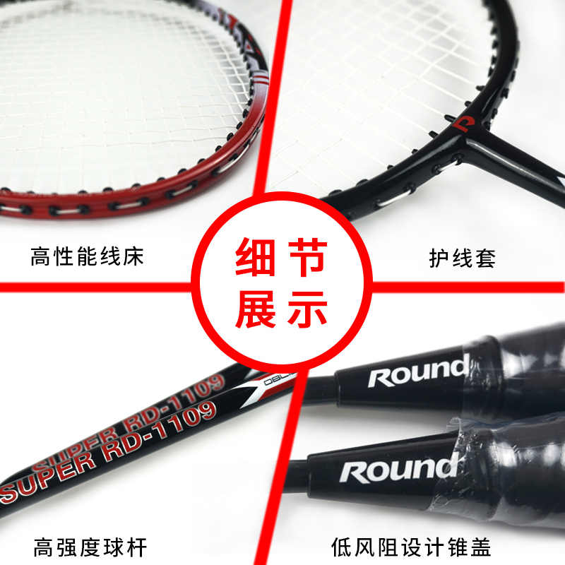 Rongdao RD-1109 badminton rackets 2 packs a pair of ultra-light double rackets for family couples red and black