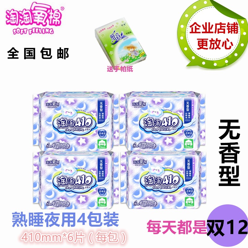 Ex-gratia Cleaning Naughty naughty cotton clear and sanitary cotton ultra-long night with aunt towel cooked sleeping 410mm pure cotton 6 slices of no incense